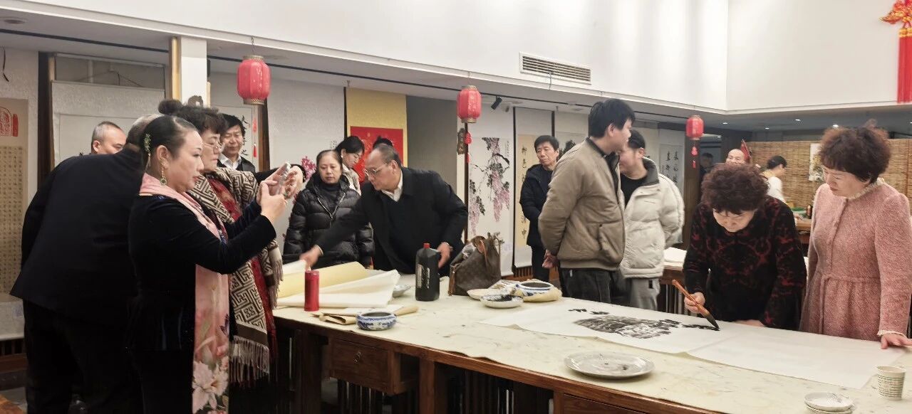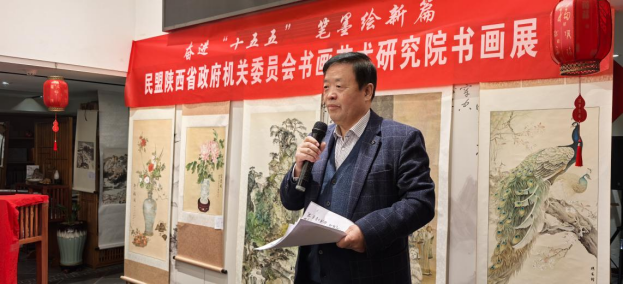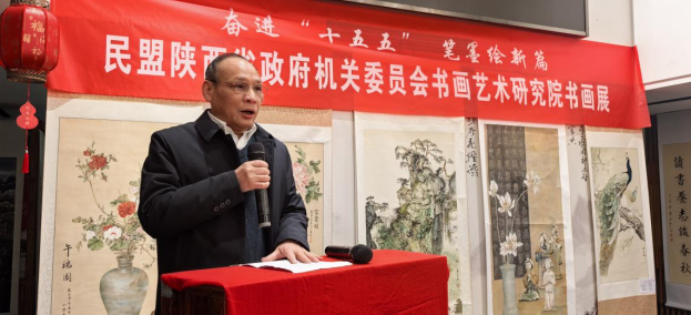 2025年12月20日,由民盟陕西省政府机关委员会书画艺术研究院主办的“奋进‘十五五’•笔墨绘新篇”主题书画展在古色古香的长安茶馆隆重举行。此次展览以艺术为载体,热情讴歌新时代发展成就,生动展现民盟成员服务社会、助力文化建设的责任担当,为即将到来的“十五五”规划实施注入了蓬勃的文化动力。