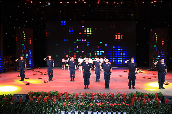 运城经济技术开发区公安分局代表队的“热血青春、筑梦警营”表演节目,由20名女队员和8名男队员组成。参赛队员充分发扬不畏强手、奋勇争先、争创一流的精神,赛出了风格、赛出水平、赛出了友谊、促进了交流,展现了分局威武之师、文明之师、胜利之师的精神风貌。比赛中,男队员一气呵成、干净利落、节奏紧凑的散打抱摔、擒拿格斗表演,彰显了公安民警强壮霸气、一身正气、舍我其谁的豪情壮志,女队员流畅有力、活力四射、英姿飒爽的啦啦操和自由搏击表演,展示了公安女警铿锵玫瑰、当仁不让、不甘落后的巾帼风采;动感欢快的节奏、整齐规范的动作、嘹亮响彻的口号,令人耳目一新,眼前一亮、为之一振,不时赢得现场观众的喝彩和鼓掌。分局领导高度重视此次大赛活动,亲自参与节目编排和策划,多次深入排练现场进行指导和调整,要求全体参赛队员务必全力以赴,圆满完成任务,舞出精彩、跳出力量、打出气势,全面展示公安分局朝气蓬勃、拼搏向上的精神风貌。全体参赛队员克服时间短、任务重等困难,充分利用休息时间,加班加点,挥汗如雨、倾情投入训练,齐心协力、默契配合完成既定目标。